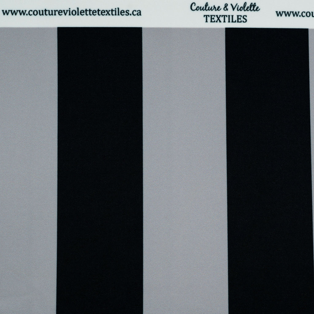 Tissu imprimé avec lignes d'une largeur de 5cm, couleurs gris et noir dans la collection Stripe, design unique avec un choix de tissus écoresponsable.