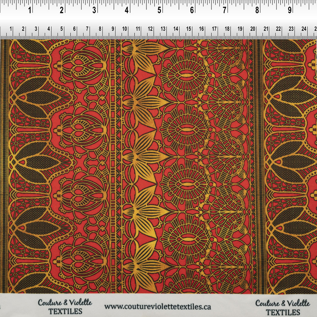 Beautiful golden lace pattern on a red background. Exclusive design with a choice of eco-responsible fabrics.