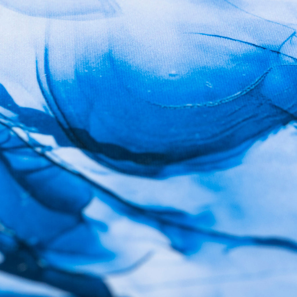 Printed fabric with blue ink stain pattern from the Encre - Ink collection.