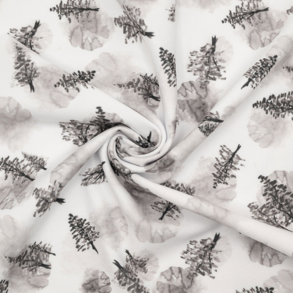 Patterns of small trees and watercolor stains in black and white. Exclusive design with a choice of eco-responsible fabrics.