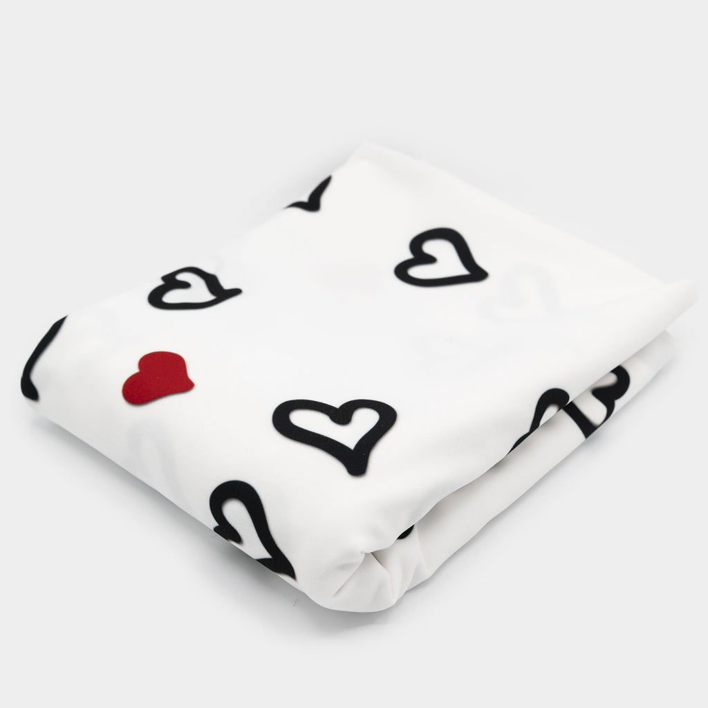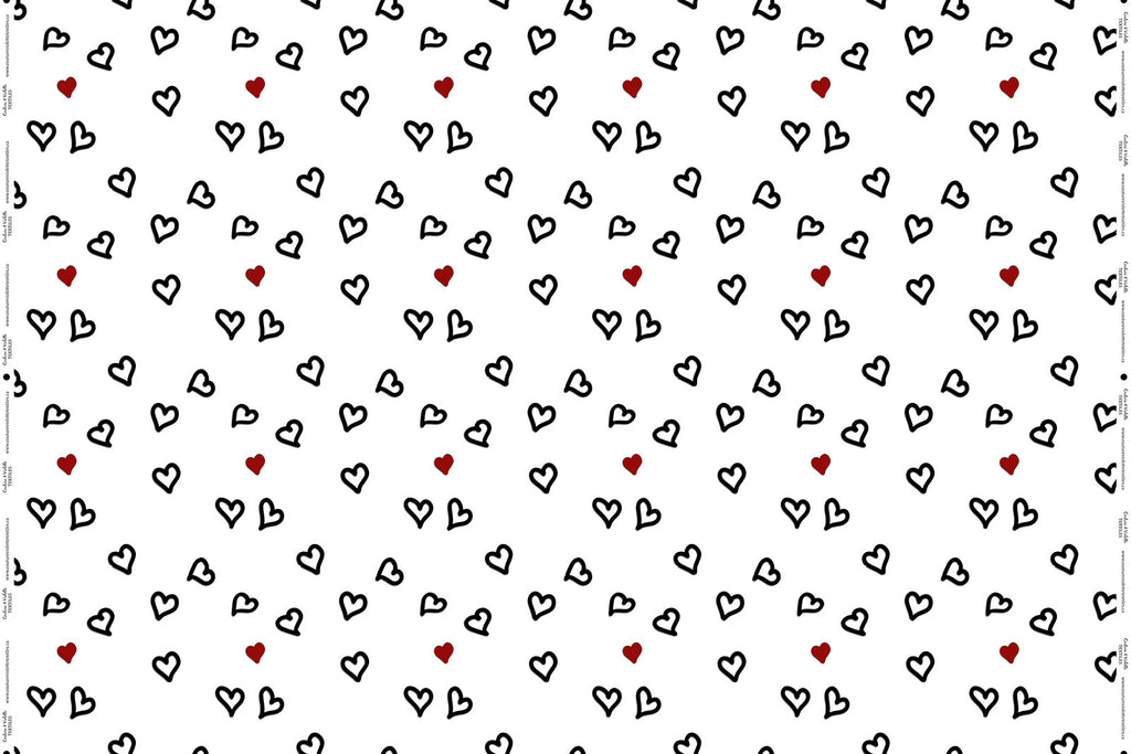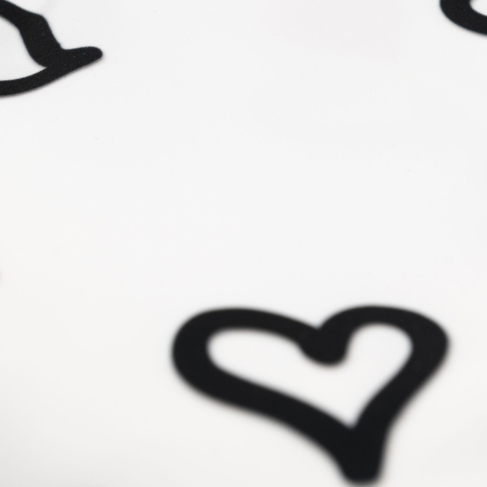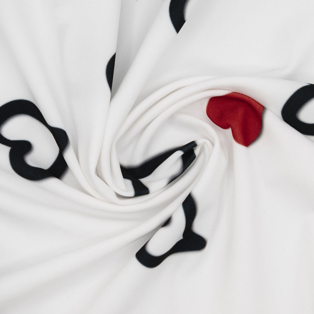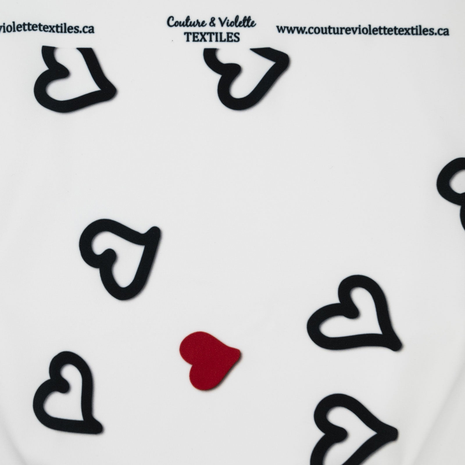 Tissus imprimé avec motifs de grands coeurs sur fond blanc dans la collection amour design unique avec un choix de tissus écoresponsable.