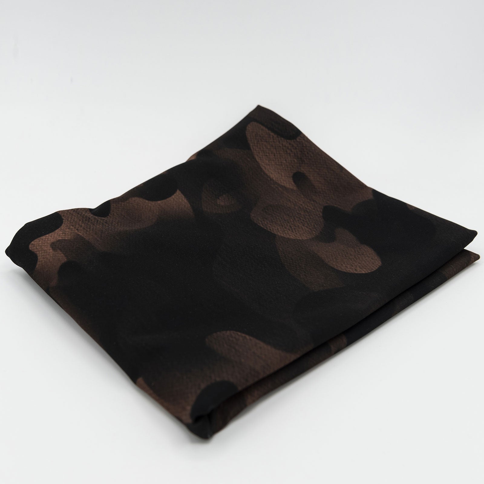 Tissu imprimé avec motifs de camouflage sur fond macchiato dans la collection camo classique design unique avec un choix de tissus écoresponsable.