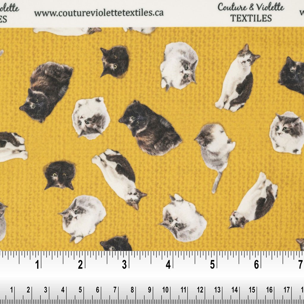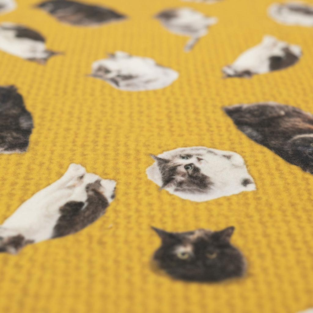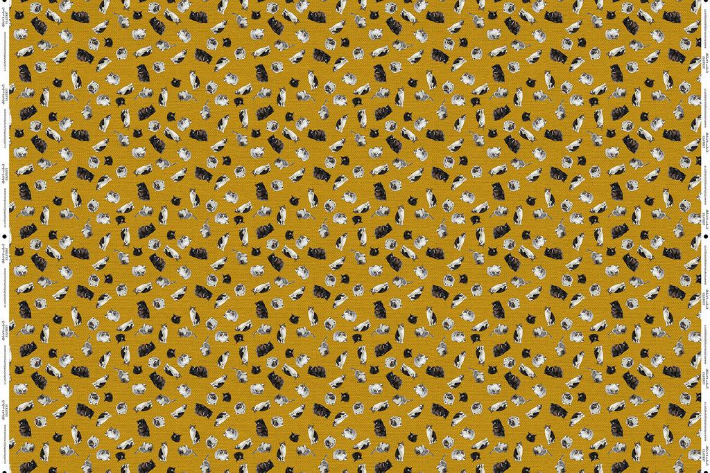 Motifs de Mademoiselle créés à partir de photographie sur fond jaune doré.  Design exclusif avec un choix de tissus écoresponsable.