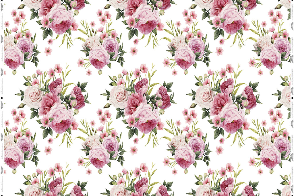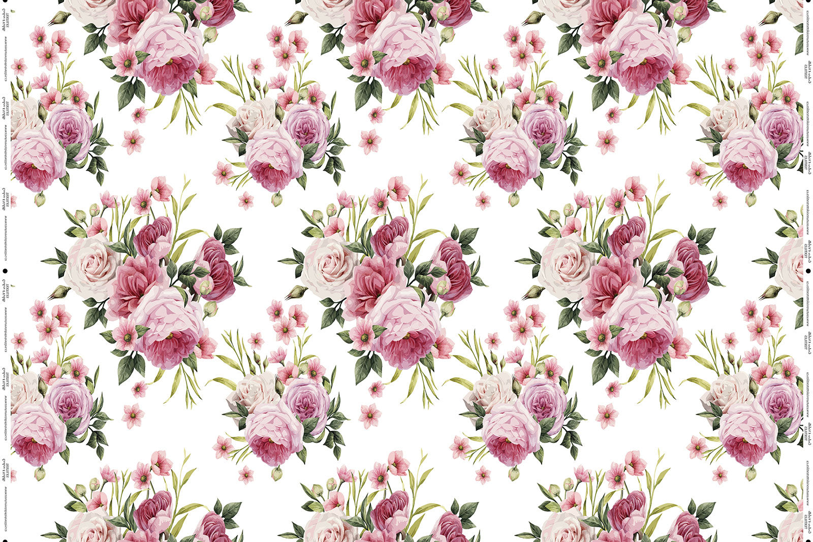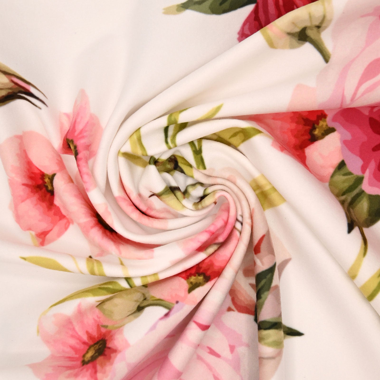 Tissu imprimé avec motifs de grandes pivoines sur fond blanc dans la collection crânes et pivoines design unique avec un choix de tissus écoresponsable.