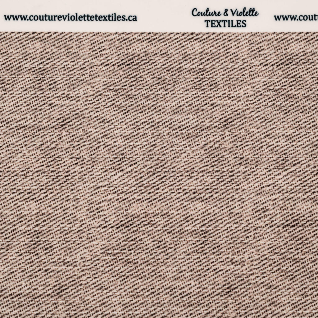 Tissu imprimé avec design imitation jeans de couleur beige dans la collection denim design unique avec un choix de tissus écoresponsable.