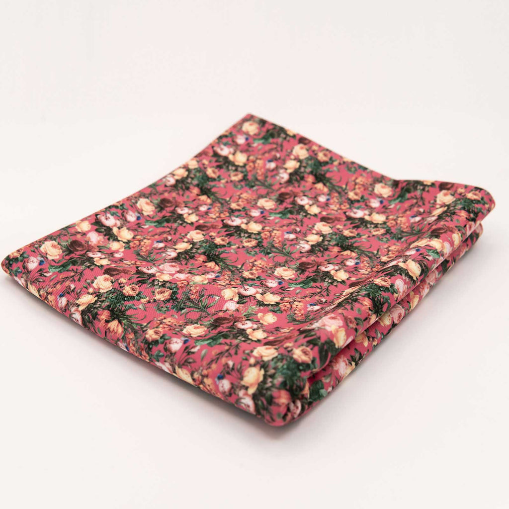 Tissu imprimé avec motifs de petites fleurs pêches sur fond fruit dove dans la collection Microfleurs design unique avec un choix de tissus écoresponsable.