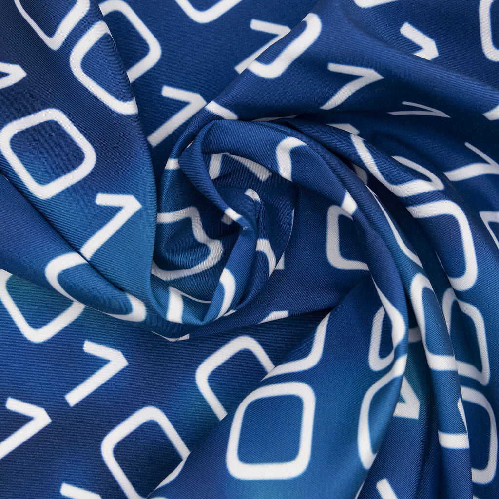 Tissus imprimé avec motifs de grand code binaire blanc sur fond bleu dans la collection techno - binaire design unique avec un choix de tissus écoresponsable.