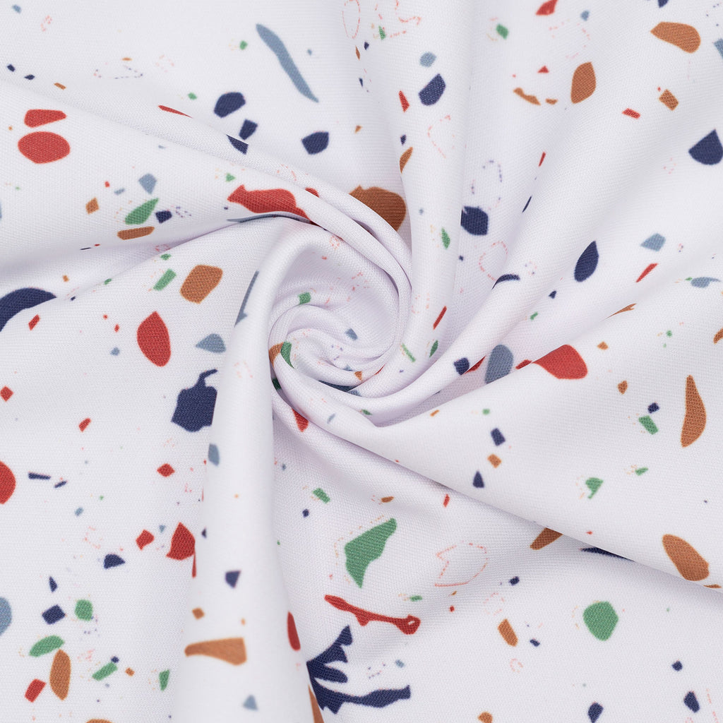 Tissu imprimé avec motif de terrazzo New York hiver sur fond blanc dans la collection terrazzo design unique avec un choix de tissus écoresponsable.